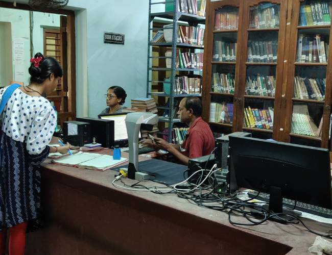 The Central Library of Panskura Banamali College (Autonomous) serves as a cornerstone of academic excellence and intellectual growth within the institution and stands as one of the largest and richest college libraries in West Bengal.. Established over 60+ years ago, the library has grown into a comprehensive resource center, housing an extensive collection of over 60,882+ books, 15+ journals and magazines, 123+ CDs/DVDs, 6+ newspapers, 14,022+ e-journals, and 432,881+ e-books across diverse disciplines. It holds numerous rare and invaluable books, including those generously donated by alumni and publishers, whose valuation is beyond measure. In addition to the central collection, several academic departments maintain their own seminar libraries with reference and textbooks, some purchased through departmental grants and others donated, further enriching the learning environment. Certain rare and old books are not included in the official count due to their historical significance. Furthermore, the library has subscribed to ProQuest for access to a wide range of e-resources. ProQuest provides an extensive collection of scholarly content, including academic journals, dissertations, theses, newspapers, and reports, covering various fields of study. This subscription enhances the research capabilities of students and faculty, enabling them to access high-quality information and stay updated with the latest developments in their respective fields. The library caters to the needs of approximately 7,500 undergraduate, postgraduate, and Research Scholar, along with over 150 faculty members and 100 staff members across 25 undergraduate, 7 postgraduate, and 2 training departments (B.Ed. and B.P.Ed.). Its services have been fully automated using the 'Koha' library database management software, allowing for seamless cataloging, searching, and access to resources. To enhance its digital capabilities, the library has implemented DSPACE for maintaining a digital repository. The library's digital infrastructure is supported by a high-power online UPS for uninterrupted service. Efforts are also underway to enable web-based searching of the library’s materials through the integrated library management system. As a core member of INFLIBNET-NLIST and NDL of IIT Kharagpur, the library provides online access to numerous essential full-text databases in science and arts, expanding the scope of research and learning opportunities for students and faculty alike. The library operates from Monday to Saturday, 8:30 AM to 5:30 PM, ensuring convenient access to resources for the college community. With a modern, student-friendly environment, digital archives, reading rooms, and a dedicated staff, the Central Library stands as a driving force behind the academic and research achievements of Panskura Banamali College (Autonomous).